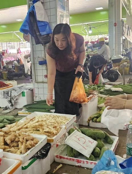 她仔細地挑選著每一樣食材,不時用手輕按測試肉質(zhì)彈性,或是湊近聞聞食材,檢查新鮮程度。