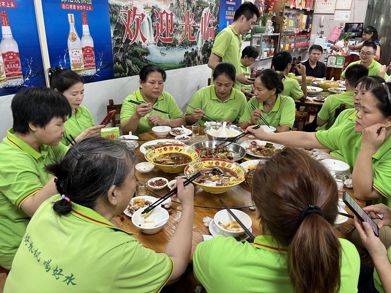 平日里專注于生產(chǎn)線的同事們此刻都展露出輕松的笑容。有人細心地為鄰座添茶倒水,有人熱情地幫忙轉(zhuǎn)菜,簡單的動作中流露著同事間真摯的情誼。